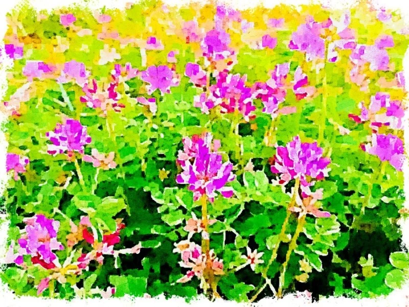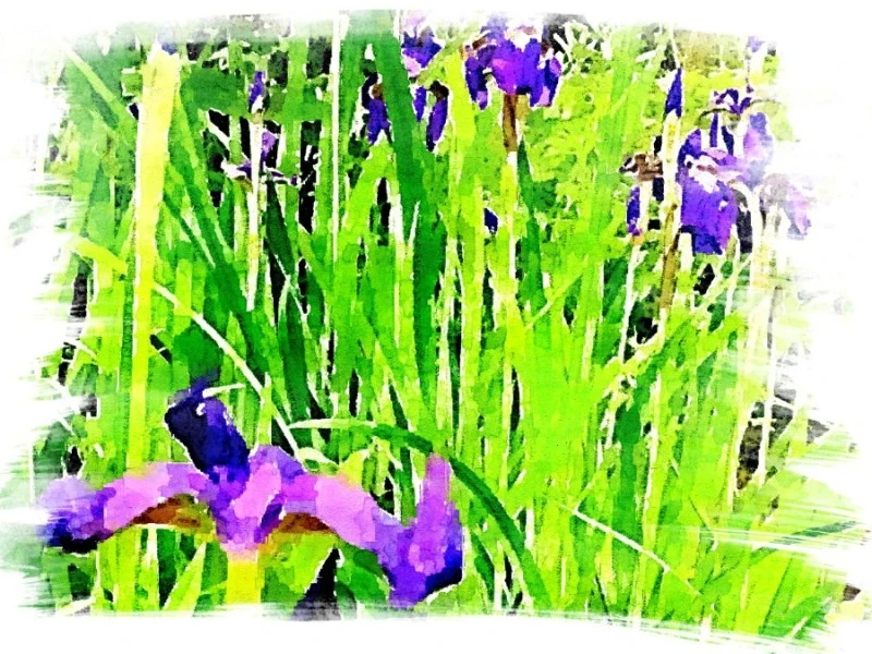 청신한 오월 물가에는 노란 붓꽃 한창/ 이에 질세라 보랏빛 아이리스도