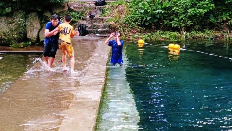 슬리퍼 신은 채 슬쩍 물에 들어가 봤더니 선뜩할 정도로 차디찬 수온이다.