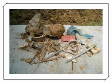 흙 속에서 시멘트 덩어리며 캔과 플라스틱 스티로폼 유리조각에 대못 등등 잡티들이 튀어나와 모아놓으니 제법.