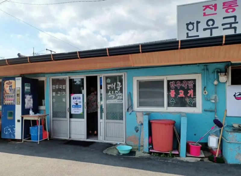 가건물같이 허름한 전통 한우국밥집, 간판도 수수하다.
