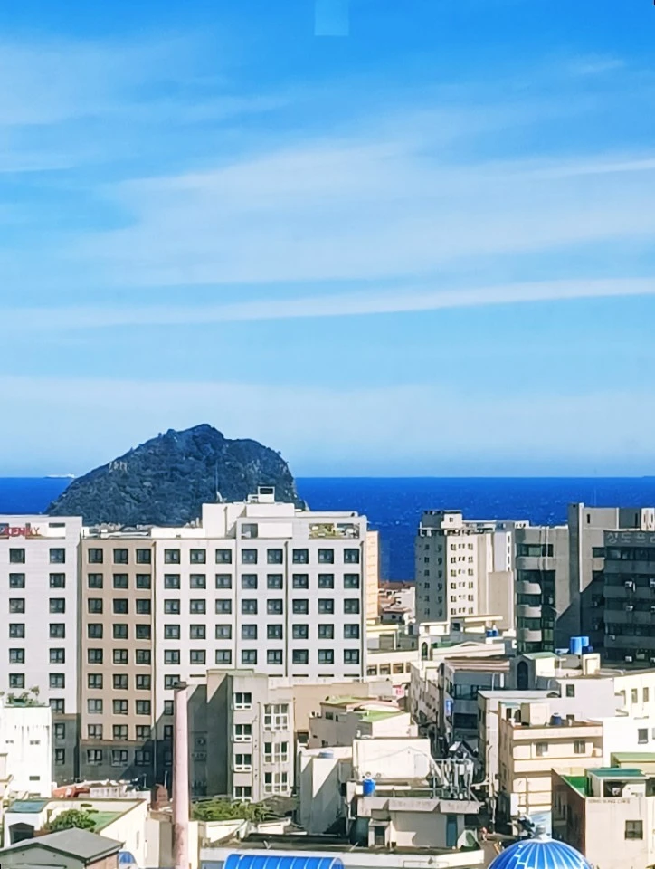 짙은 해무로 가려졌거나, 거친 폭우로 잠시 숨었다면 날씨 들기 기다리면 되지만 앞 건물에 완전 잠식당해 버릴 섶섬.