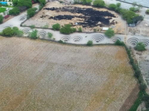 농지 옆에는 잉카인들의 뛰어난 수리시설 흔적인 달팽이 모양 우물이 수로 따라 연결된 채 또렷이 드러났다.
