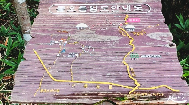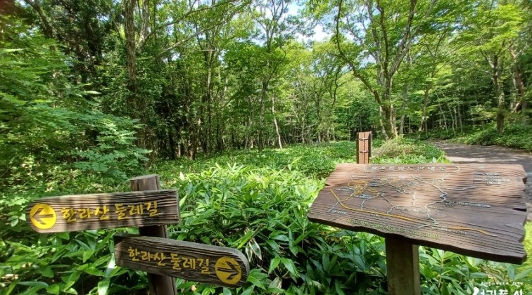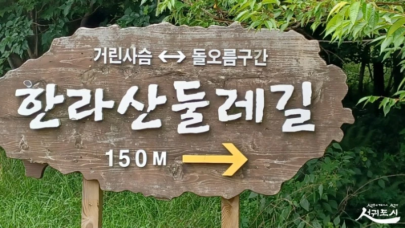 길 건너편 숲에 한라산 둘레길 뚜렷한 표식이 마중 나와 서있었다.