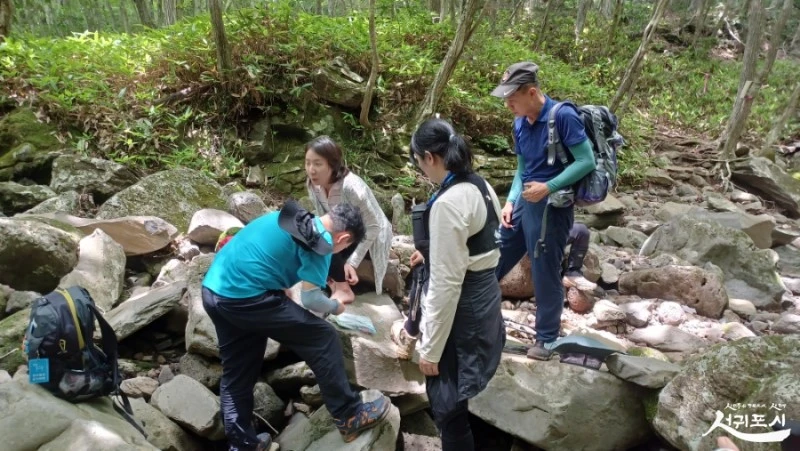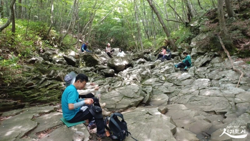 요즘은 장마철이므로 그나마 계류 약간씩 흐르거나 바위에 고여있는 물웅덩이 여기저기서 눈에 띄었다.