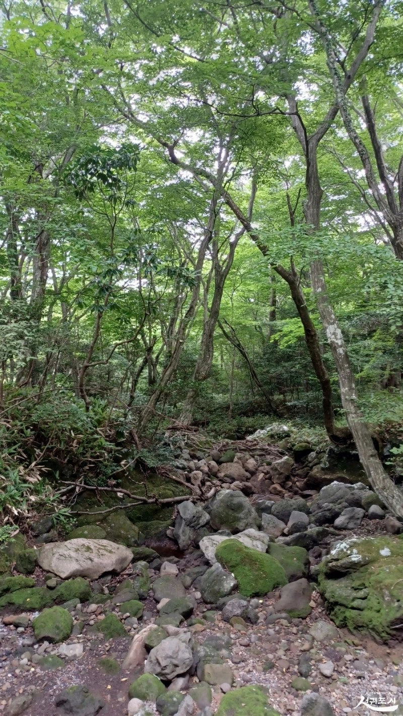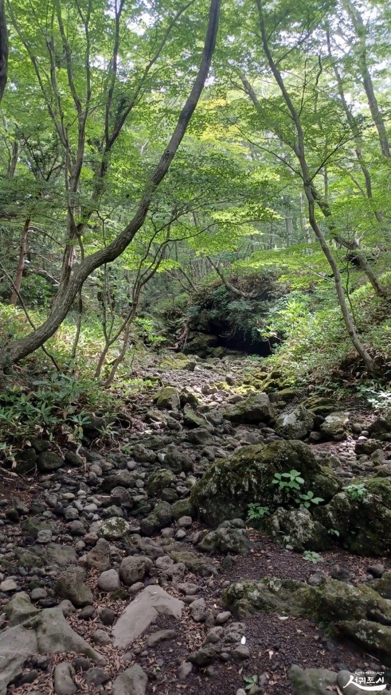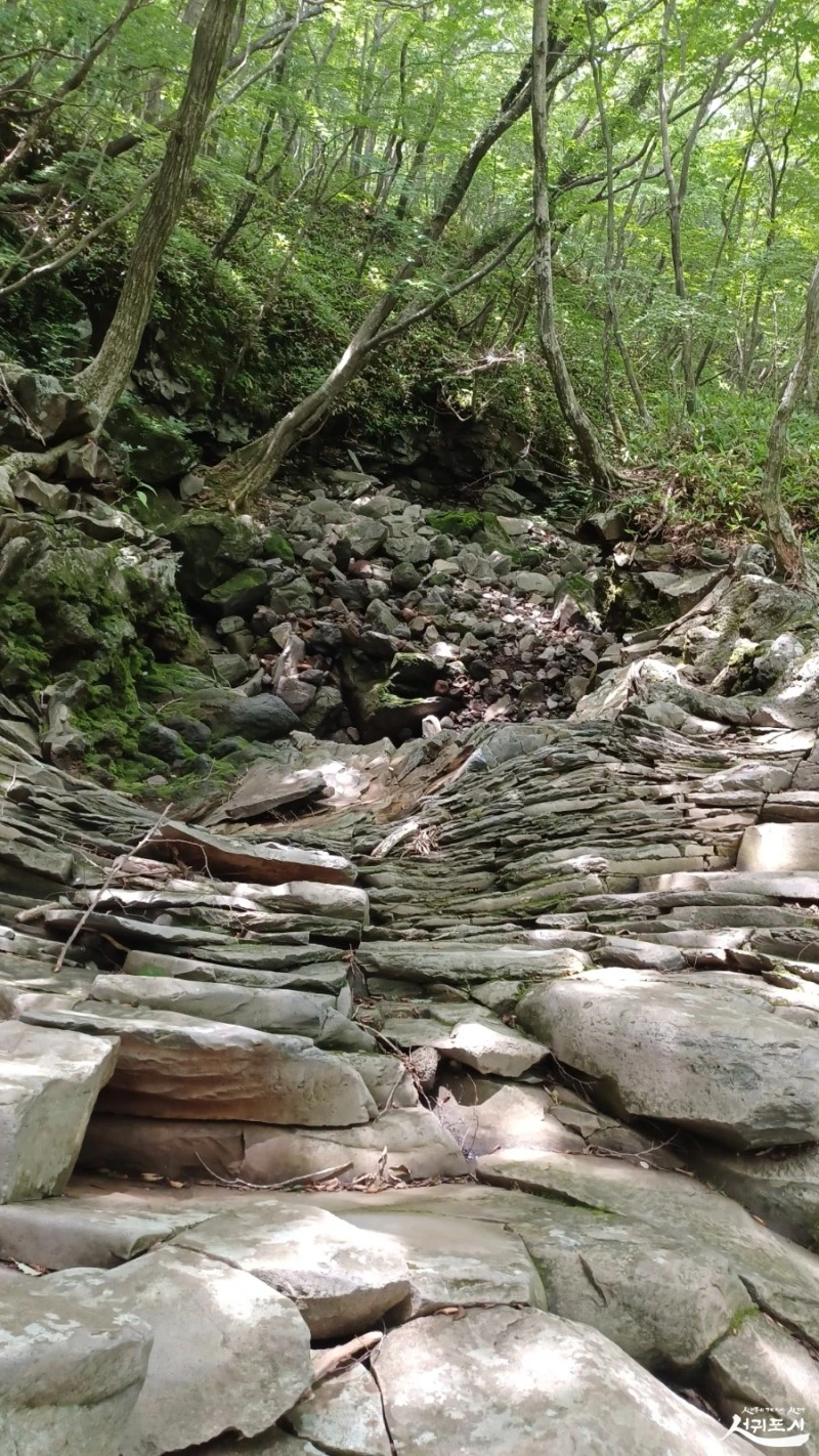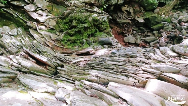 양켠으로 녹음방초 우거져 있으며 잊을만하면 이끼 잔뜩 낀 하상 계곡이 모습 드러냈다.