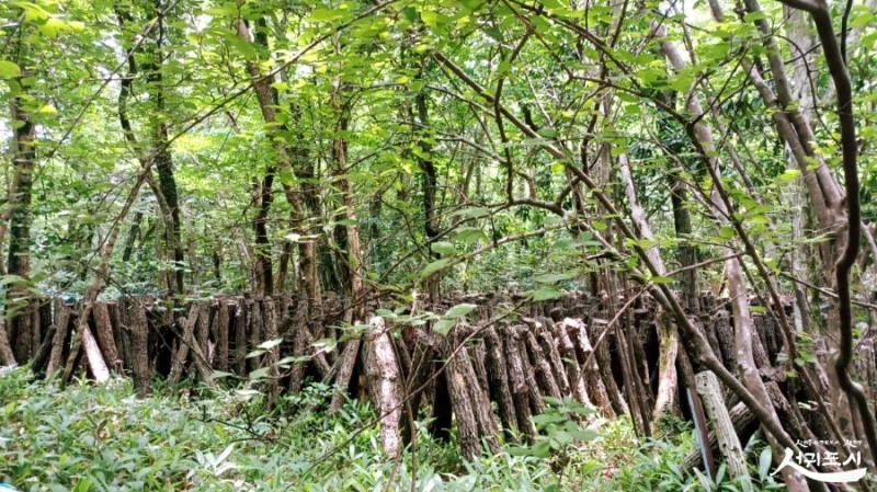 밤나무 닮은 졸참나무, 노인 피부 같은 서어나무, 아가 손바닥처럼 이쁜 단풍나무숲 걷다 보면 표고재배 삼거리에 이른다.