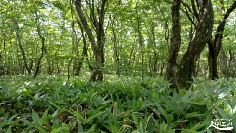 양편으로 서어나무 때죽나무 단풍나무 키대로 자라 하늘을 가렸으며 빽빽하게 군집한 조릿대는 유달리 키가 컸다.