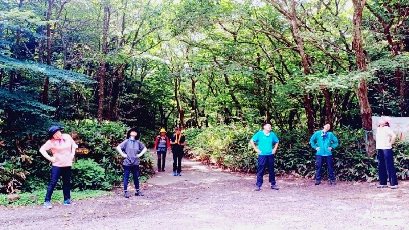 상세한 안내 지도가 기다리는 삼거리 쉼터에 배낭 벗어놓고 본격적인 트레킹에 앞서 단체로 스트레칭부터 했다.