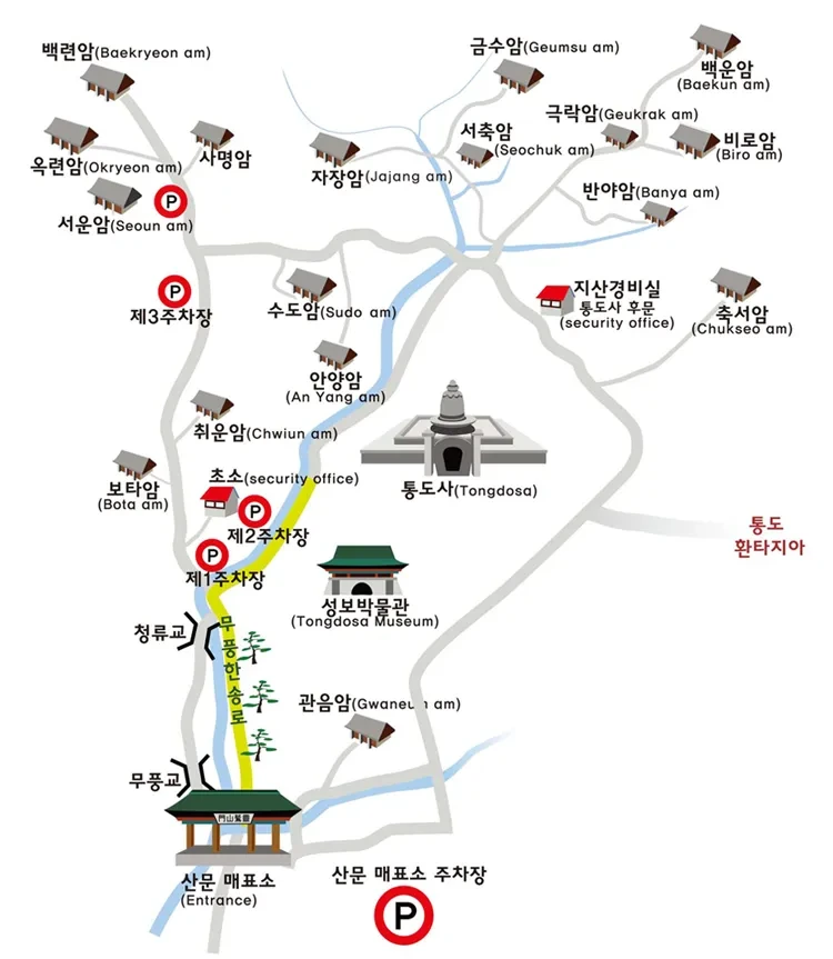 하지만 당시만 해도 무풍한송길 근 십리를 걸어서 라야 통도사 산문에 닿을 수 있었다.