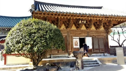 법당마다 단청 낡아 섬세한 목조각 그대로 드러나 절로 합장 자세가 되었다.