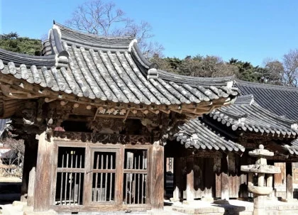 통일신라시대의 고색창연한 비각과 아담한 석탑에는 일월의 무게 따라 녹둣빛 돌이끼