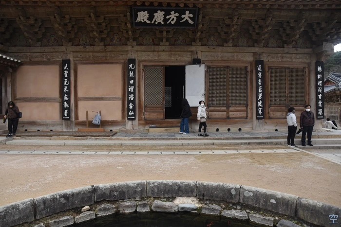 대웅전 한 건물에 동쪽면으로는 대웅전 현판이, 서쪽 방향에는 대방광전 현판이,