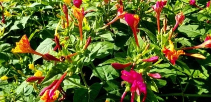 바람 고요한 저물녘, 막 피어난 분꽃에 앉은 실잠자리를 보았다. 분꽃은 저녁밥 지으려 보리쌀 대낄 때쯤이나 되어야 핀다고 했던 대로다. 생래적으로 한낮 강렬한 폭염은 노댕큐인지 염제가 물러갈 즈음에야 피기 시작한다. 아침에는 꽃자루 새침하게 오므린 채 딴전 피다가 늦은 오후 되어야 꽃잎 여는 분꽃. 색색이 핀 분꽃을 찍으려 꽃 가까이 다가갔더니 작은 물체가 호로록 날아가 버렸다. 실잠자리, 수생 생물로 알았는데 의외였다. 물가 수초에 산란관을 꽂고 알을 낳기에 부들이나 물풀 우거지고 연꽃 자욱이 핀 연못에서 주로 만나곤 했던 실잠자리다. 옷깃 스치는 기척에도 민감하게 반응하고 금세 날아가나, 활동영역이 좁은 편인 실잠자리다. 잠시잠깐만 기다리면 근처에 다시 날아와 날개 살포시 접고 앉는다.