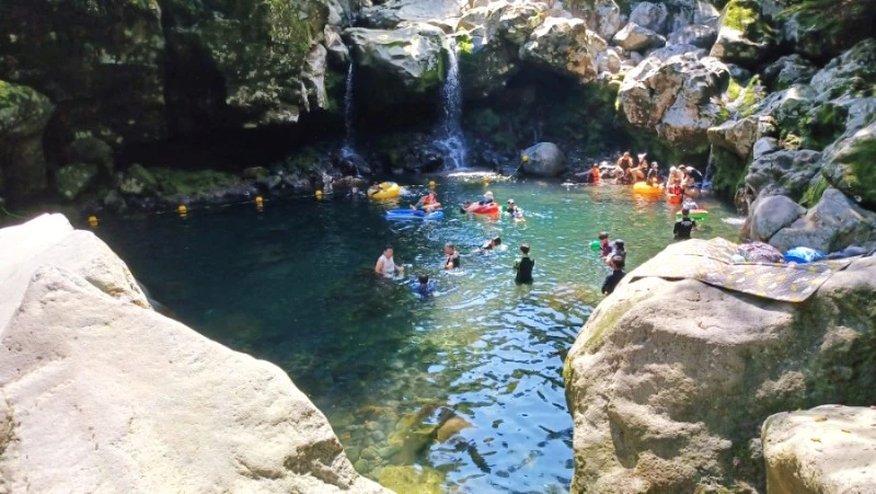 깊은 산간이라 수온 꽤 낮아 이빨 맞부딪힐 판일 텐데 수영 삼매경에 빠지거나 튜브 타는 물놀이객은 마냥 즐거워 보였다.