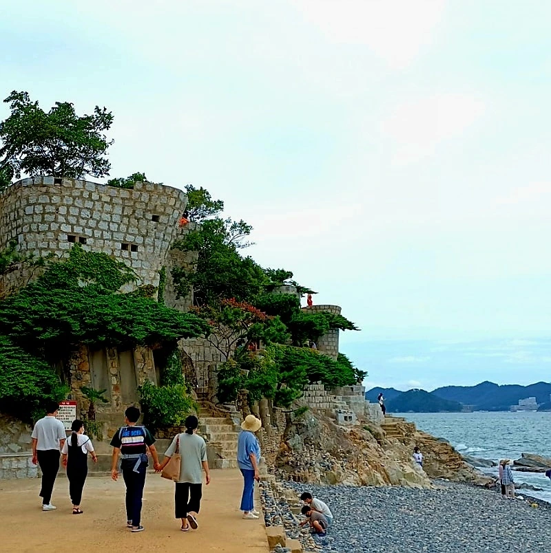 이국적 분위기를 자아내는 데다 바다를 배경으로 한 남해안의 또 하나 명소가 된 아름찬 매미성.