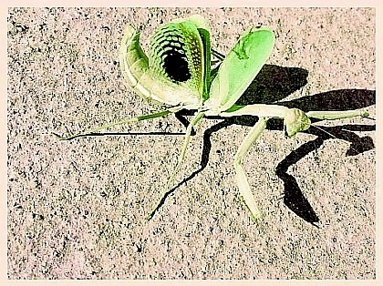 생김새마저 괴상한지라 신문을 말아 쥐고 녀석을 멀찌감치 떨어뜨려버렸더니 곧바로 정신 차린 사마귀는 어기적거리며 잔디밭으로 향했다.
