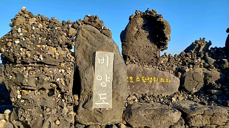비양도 이름이 새겨진 바위 옆, 소원성취 의자에 소망의 돌 셋을 올려놓고 총총 물러났다.