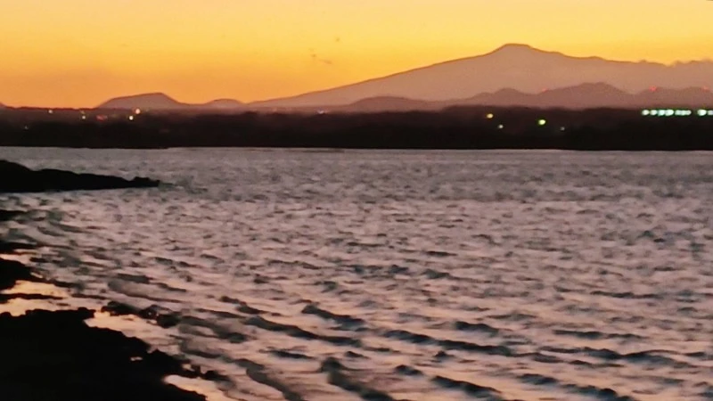 짧은 가을 해 어느덧 뉘엿뉘엿 석양 내리고 금세 한라산은 홍시 빛 노을에 잠겨 들었다.