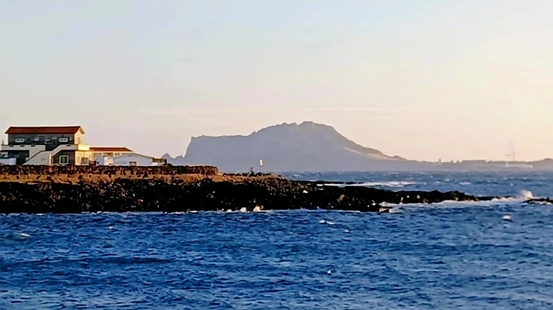 바람에 떠밀리듯 비양도를 벗어나 다리를 건너기 직전에 바라본 우도는 제법 큼다막해보였다.