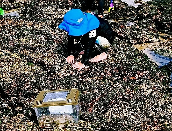 채집통이나 장난감 양동이 심지어 비닐봉지에 바닷물을 넣어 거기다 수확물을 담는다.
