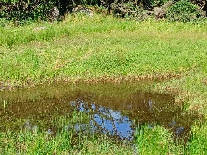 습지 낮은 곳에 고여있는 물은 야생동물들의 식수원, 그래서 자주 노루를 만나기도 하는데 뜨거워서인지 그 흔한 까마귀조차 안 보인다.