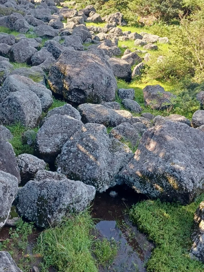 균류와 조류가 공생하여야만 형성되는 독특한 생명체인 회녹색 주황색 지의류가 널브러진 바위마다 다수 분포된 천백고지 습지.