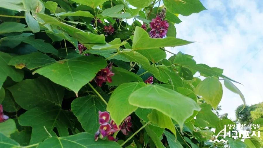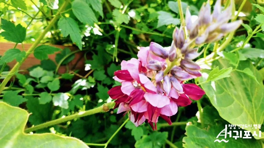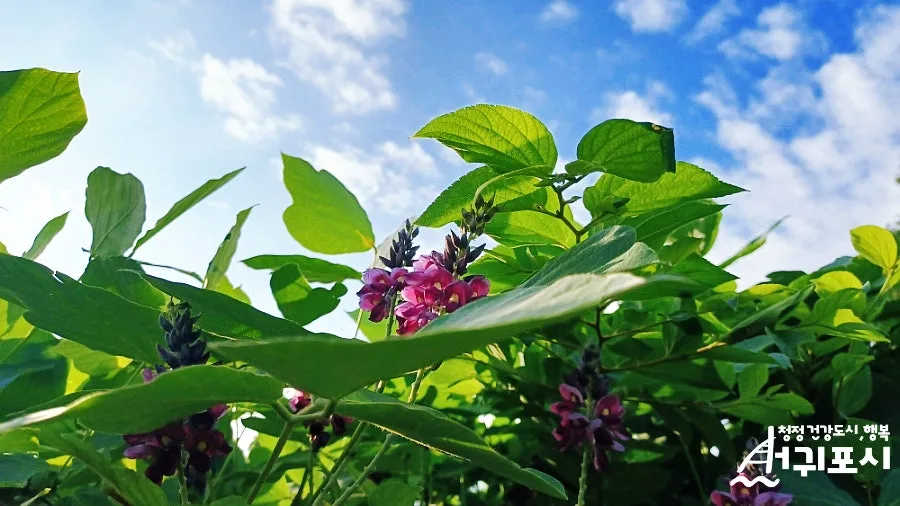 한껏 무성한 칡덩굴에 피어난 자주보랏빛 칡꽃이었습니다.