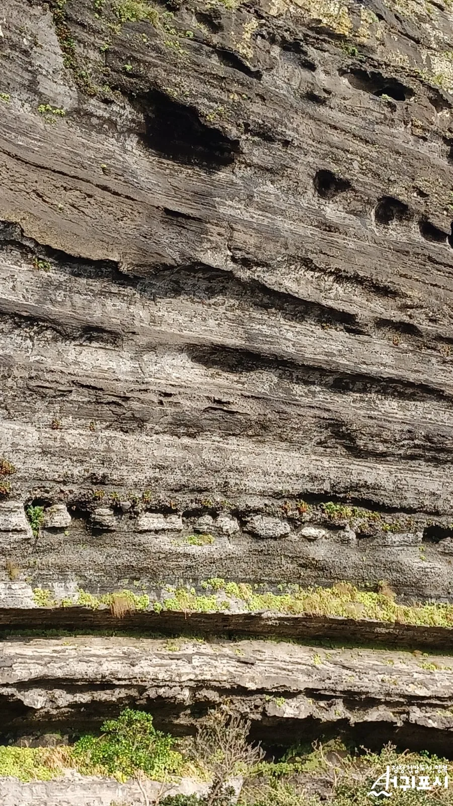 바짝 다가가서 보면 그랜드캐년 협곡 응축돼 쌓인 일월의 나이테처럼 켜켜이 포개진, 서로 결 다른 화산석이