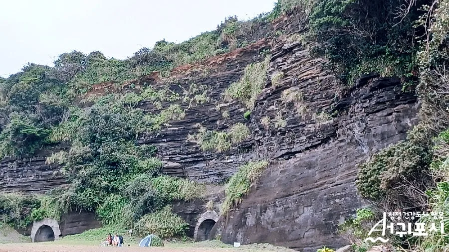 일출봉 오른쪽을 감싸고 있는 수마포 해안 절벽 아래 콘크리트 구조물의 진지동굴을 필두로 벼랑에도 동굴 여럿 위장시켜 뒀더랍니다.