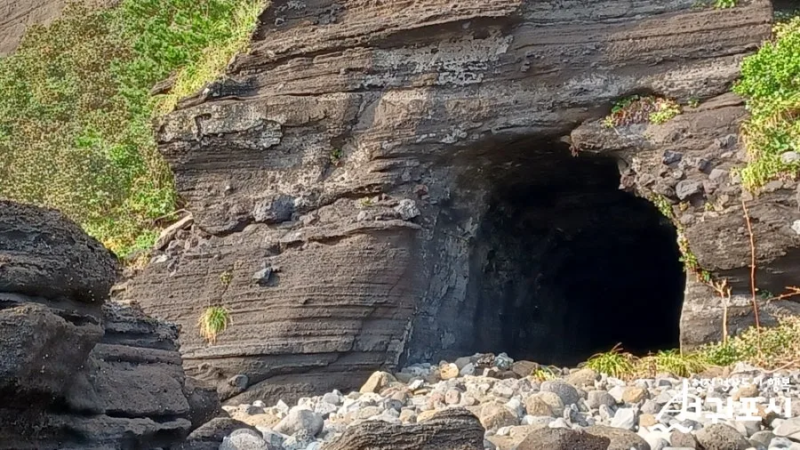 마침 썰물 때라 물이 쭉 빠져 수마포 해안 진지동굴 탐방로도 안전하게 확보돼