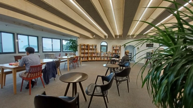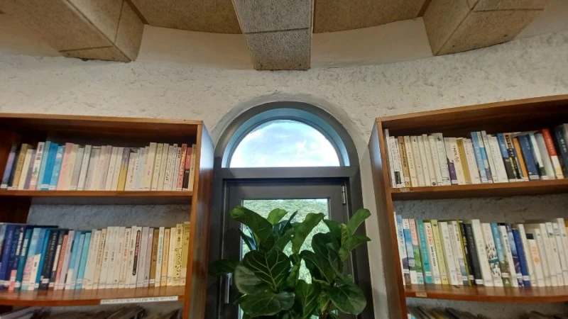 엷은 크림색 벽에 여기저기 창이 나있는 이층은 서귀포시에서 북 카페로 쓰고 있다.