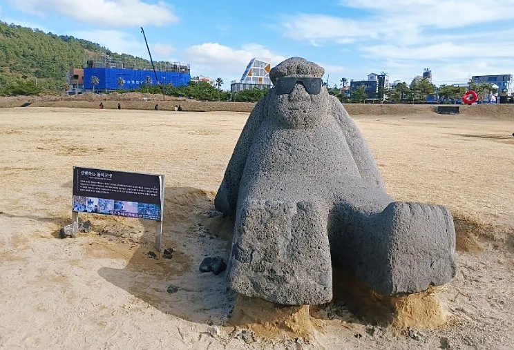 해변 초입의 돌하르방, 세상 편안한 자세라 한 컷씩 담았다.