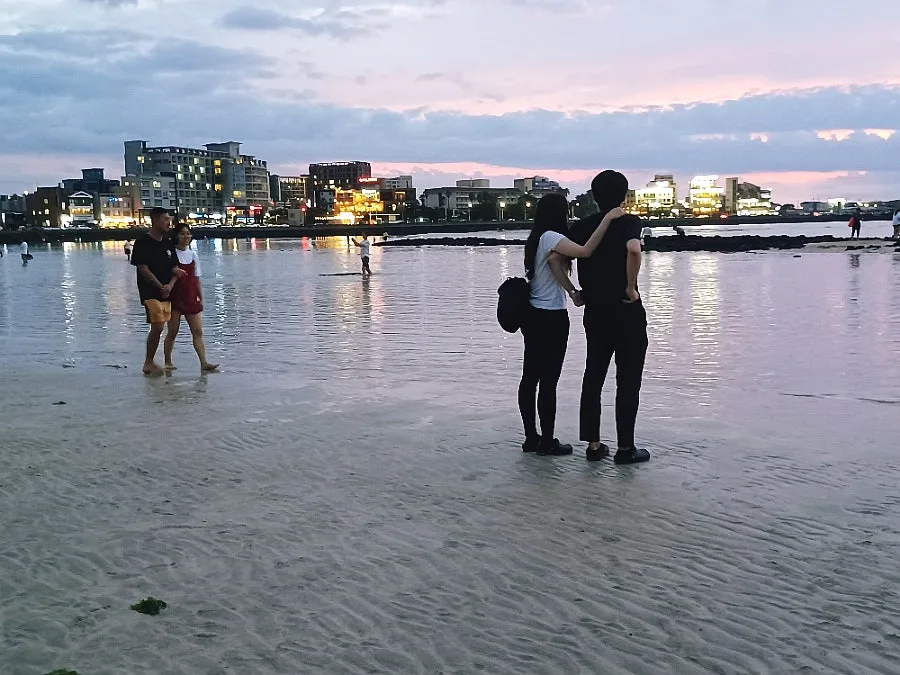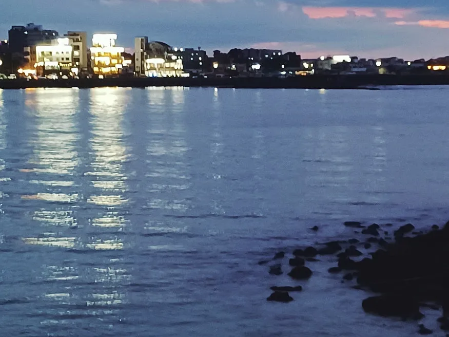 색채의 향연 황홀하게 펼쳐지는 밤바다의 매력에 빠져 얕은 물가에 발을 담근 채 시원한 해풍을 즐겼다.