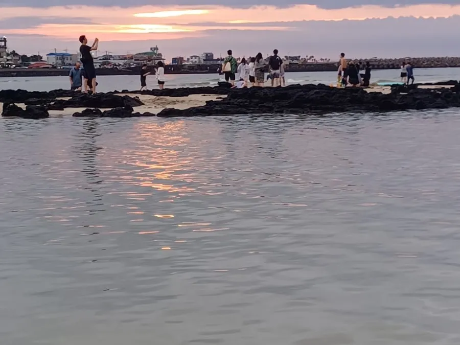 함덕해변은 바다 빛깔이 유난히 아름답다, 수심이 매우 얕다, 물결이 잔잔하고 고요하다, 로 집약된다.