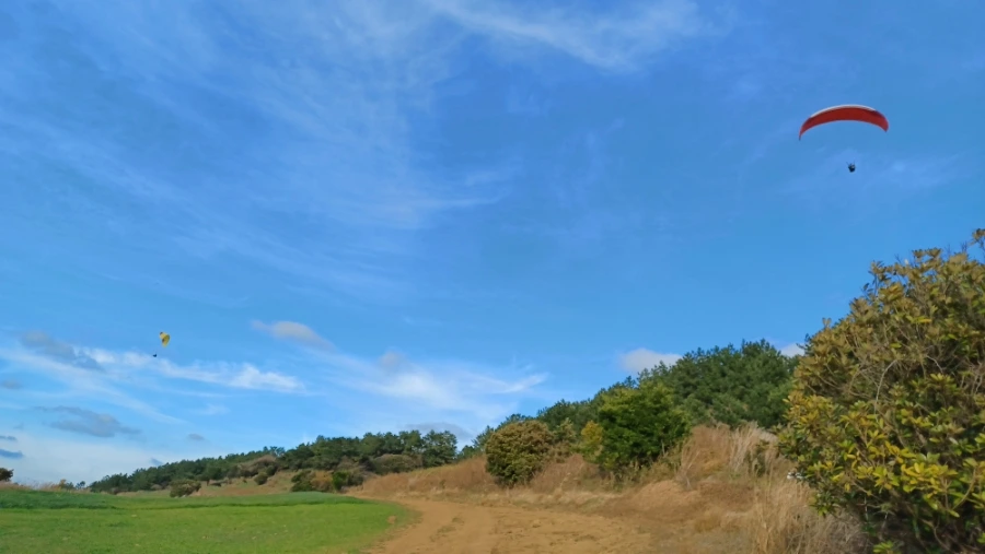 서우봉 중턱에서는 페러글라이딩도 할 수 있어 상쾌하게 하늘을 날며 가슴 가득 푸른 바다를 안아볼 수도 있다.