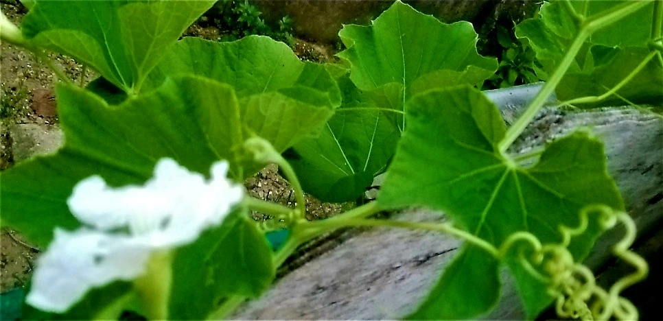 호박잎 비슷한 잎새를 보고 박꽃임을 알았지 만일 꽃만 따로 봤다면 무슨 꽃인지 헷갈렸지 싶다.