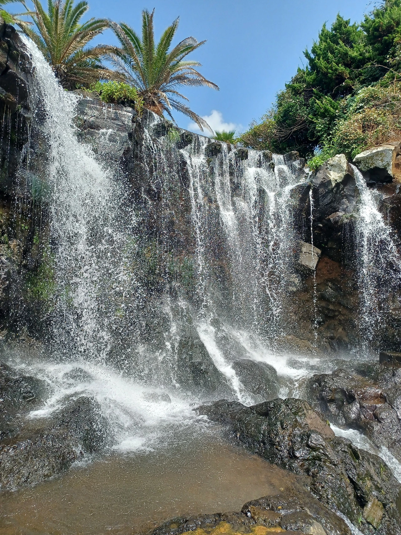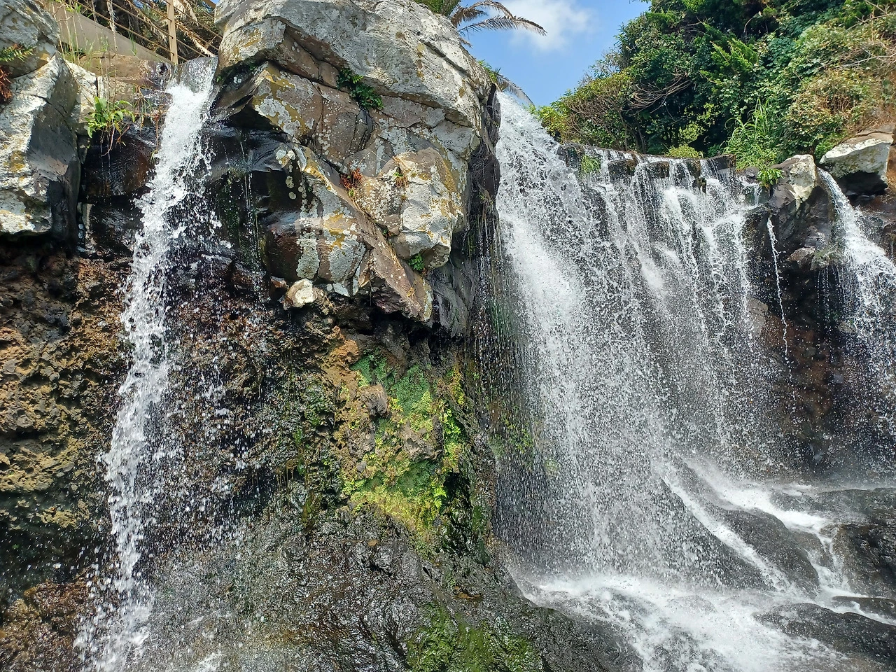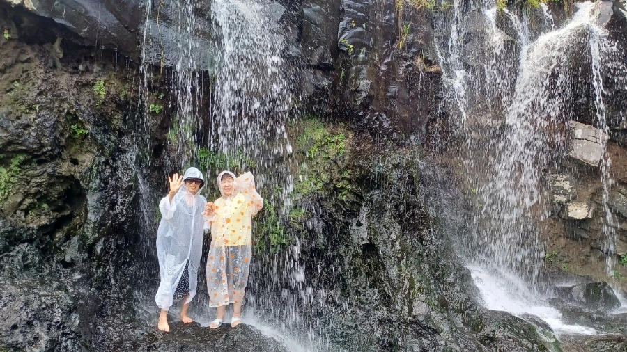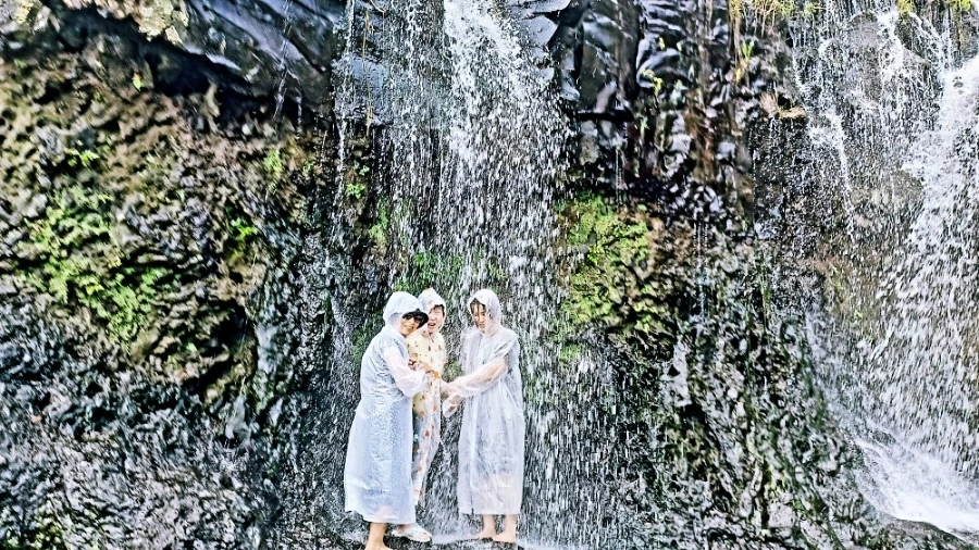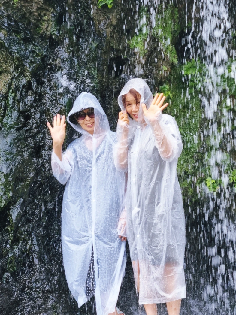 얼음같이 찬 이 폭포수는 산물(용천수)이라 약수나 마찬가지, 깨끗한 산물에 전신 마사지하믄 일 년 내내 안 아프고 건강 보장된다카는디야 뭘 망설여?
