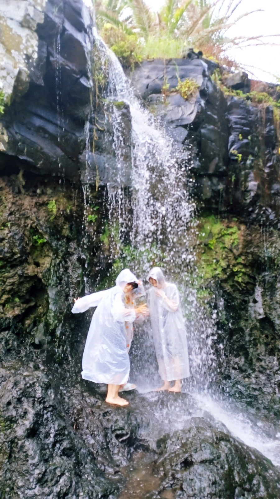 겨우 폭포 초입이지만 손에 손잡고 살살 더듬적대면서 바위로 올라가 그나마 중심잡고 서있는 기 어데고.