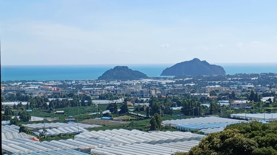 계단 오르면서 수시로 돌아서게 만들던 탁 트인 전망, 눈앞에 질펀히 깔려있는 하례 마을 전경뿐인가.