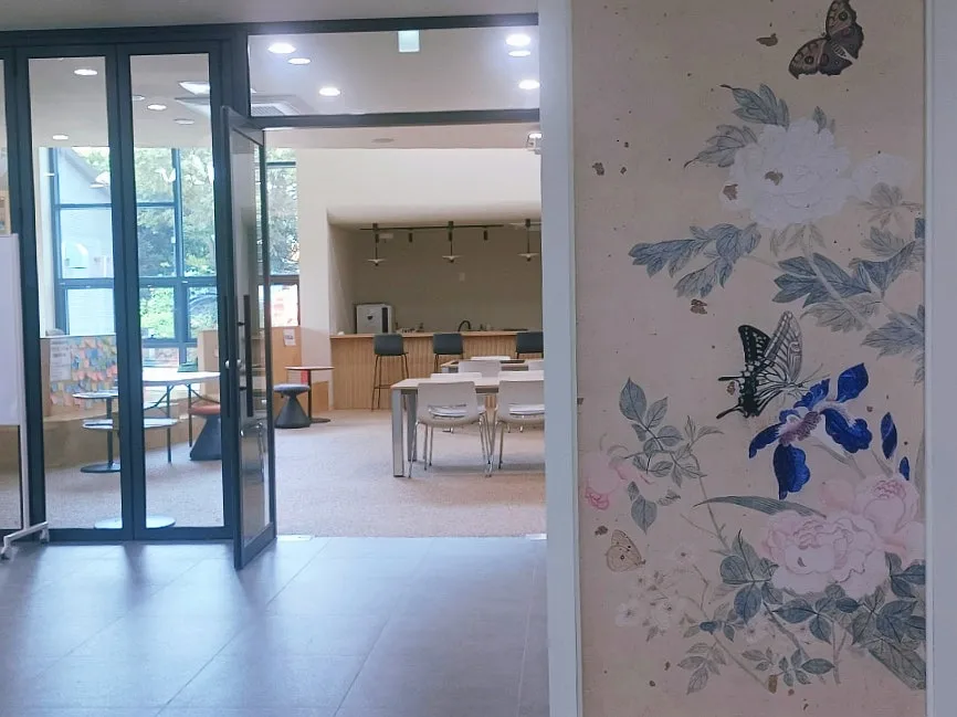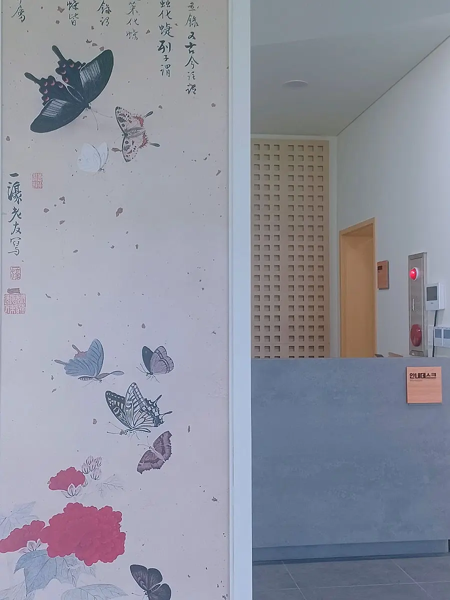 첫눈에 띈 것은 나비 표본 액자와 꽃과 나비가 어우러진 화첩도(花蝶圖) 그림이 그려진 시화 병풍 인테리어였다.