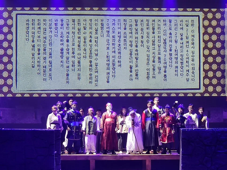 당시 제주를 침략한 왜구에 맞서 민관군이 힘을 하나로 모아 접전 끝에 격퇴시키므로 승전의 새 역사를 써 내린 제주인들.
