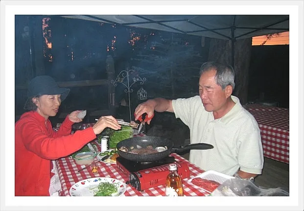 여름 성수기를 지난 터라 산장의 밤은 우리만의 독무대, 지글지글 바비큐를 하고 참나무 장작불을 피워 캠프화이어를 하고