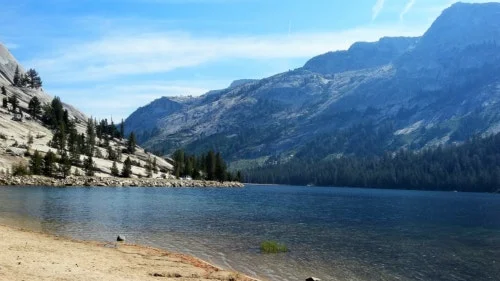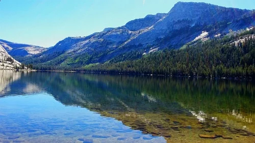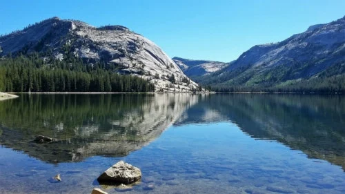 산세 장엄한 요세미티 고원지대에 자리 잡은 테나야 호수는 빙하 녹아내린 물빛 투명히 맑고 짙푸르다.
