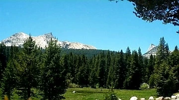 부드러운 초지 낀 평지 길을 1마일쯤 걷자 하이 시에라 캠프장이 오른쪽으로 너르게 열려 있었구요.