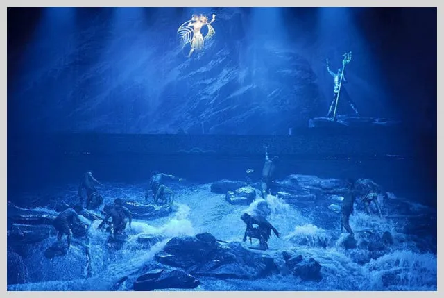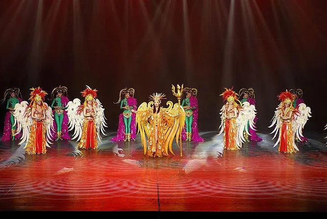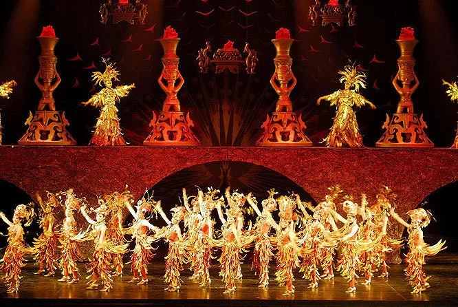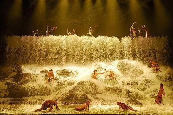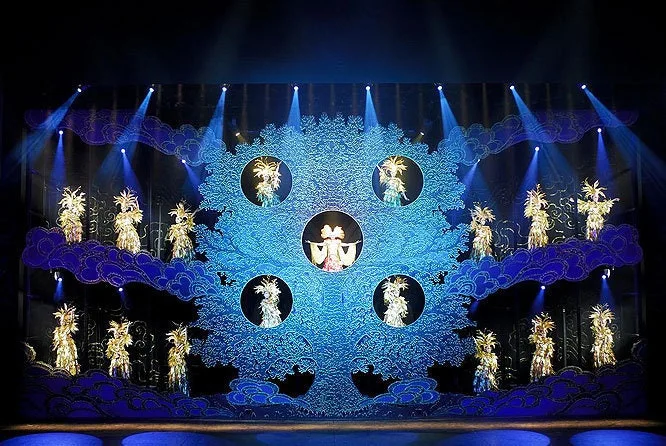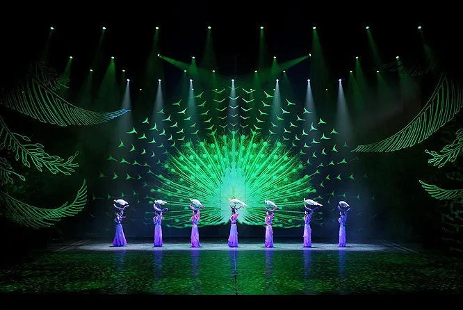아직도 유명 관광지조차 안내 팸플릿 인심이 야박스럽다 못해 여전 궁상스러운 중국. 극장에서 달랑 한 장 내준 초라한 광고 전단지에 깨알같이 쓰인 설명문대로다. 서사적인 중국 고대신화를 현대적 기법으로 버무려 재연시킨 무대는 이루 말할 수 없이 장엄 화려하여 메이드 인 차이나 맞아? 할 정도로 매 장면마다 입이 벌어지는 장관의 연속이었다. 꿈결처럼 아름다운 음악, 왕가 여인들의 고혹적인 발레, 혈기방장한 젊은이들의 전쟁 장면. 서커스같이 펼쳐지는 완벽한 아크로바트 묘기, 살아있는 흰 공작을 머리에 이고 추는 군무. 달빛 교교히 흐르는 밤의 깊은 숲 정령들, 희생적인 죽음으로 하늘에 오르는 금면여왕의 신비로운 최후까지 판타스틱하게 관객들을 홀렸다.