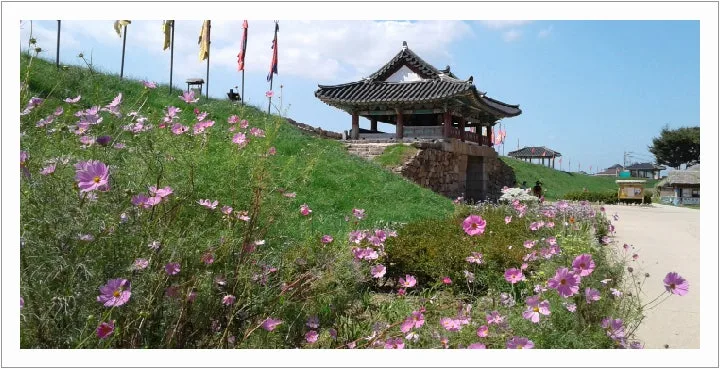 해미읍성(사적 제116호) 안 관아에서는 숱한 천주교도들을 고문하고 즉결 처형했다. 당시 고문목으로 쓰였던 수령 3백 년생 호야나무(회화나무, 충남 기념물 제172호)가 보인다. 교우들을 나무에 매달아 태형 등 고문을 가했다는데 나무엔 아직도 그 흔적이 박혀있으니... 박해 당시 숨진 순교자들의 가녀린 넋 코스모스로 환생했나, 읍성 안에는 초추의 바람결 타고 무수히 출렁대는 코스모스 물결.