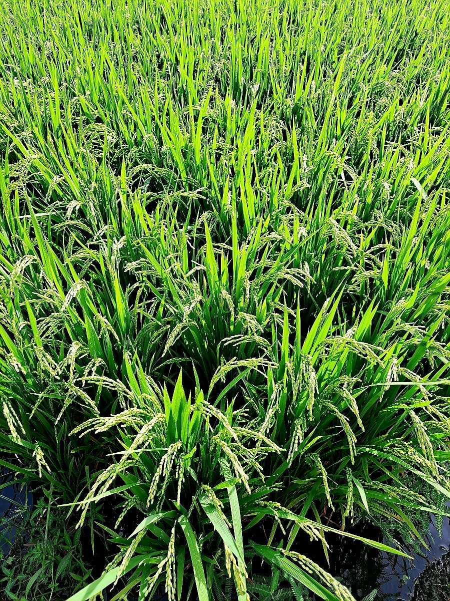 이앙기로 늦게 모내기를 한 논배미는 아직 꼬투리 여린 벼 이삭인데 낱알 여문 벼도 보였다.