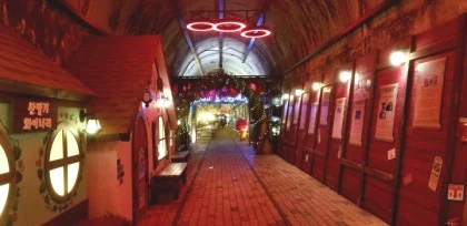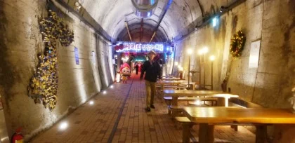 오크통 게이트를 통해 터널로 들어서면 거친 벽면 그대로의 낡은 동굴이건만 조명발 덕인지 쾌적하고 아늑한 감마저 든다.