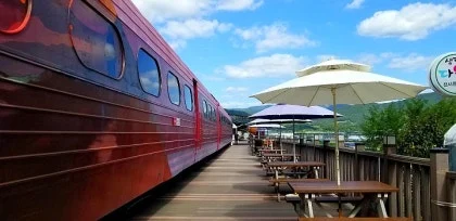 낙동강 레일바이크와 와인동굴 사이에는 새마을호 열차 2량을 리모델링한 열차카페가 운영 중이다.