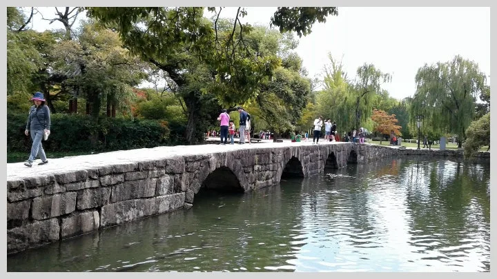정원에는 연못 너르고 못에 가로 놓인 돌다리 오작교는 한국 정원의 가장 대표적인 다리.